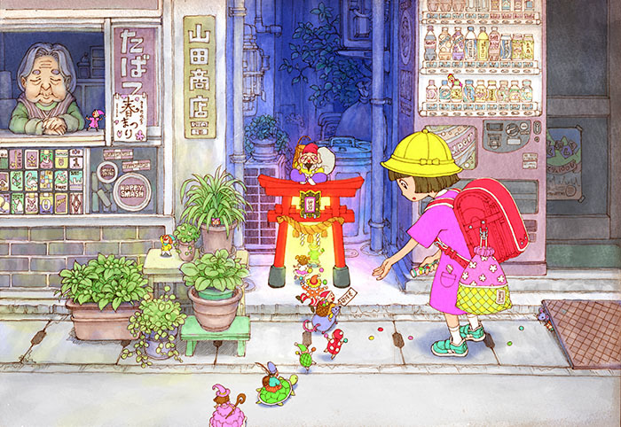 どうやって絵を描いているの?という疑問をいただいたので、こちらのイラスト「寄り道招待券」を例に、絵作りの手順を紹介します!