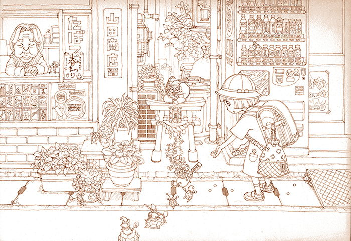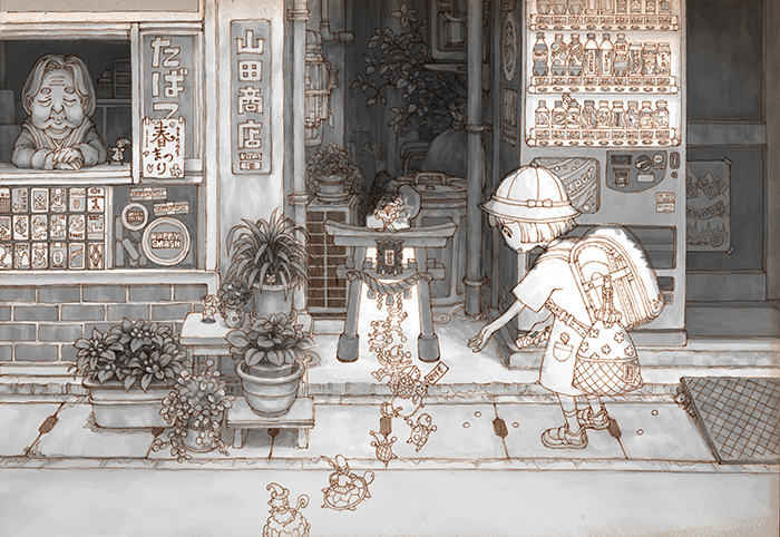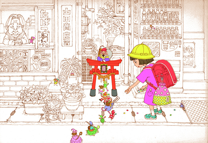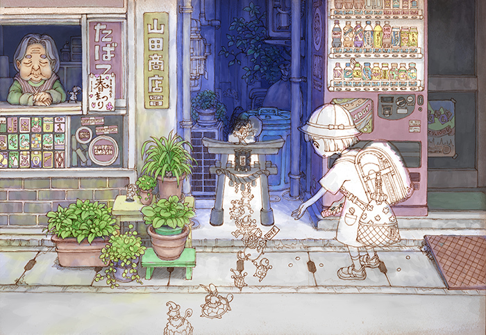 どうやって絵を描いているの?という疑問をいただいたので、こちらのイラスト「寄り道招待券」を例に、絵作りの手順を紹介します!